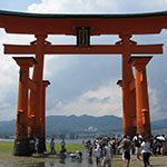 世界遺産。潮の満ち引きのよって様々に変化する日本を代表する神社。平清盛によって現在の海上に立つ社殿が整えられた。宮島口と宮島を結ぶフェリーは、松大汽船とJR西日本フェリーとある。国宝・重要文化財の建造物は17棟3基・美術工芸55点など約260点もあり見所が満載。