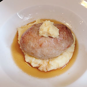 100%の豚肉を使用したハンバーグを切ると肉汁が出て来る、出て来る。人気店なので、事前に予約がおすすめ。